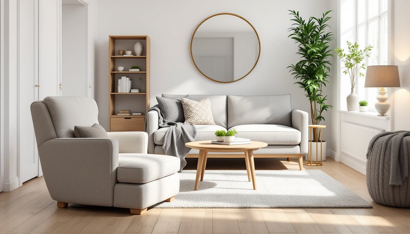Layering light matters too. A table lamp beside the sofa provides reading light and adds a design touch without the visual heaviness of an overhead fixture. Mirrors opposite windows bounce light and create the illusion of extra space. Throw pillows in complementary textures (linen, wool, cotton) add comfort and a finished look without the expense of reupholstering.